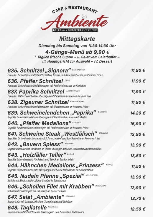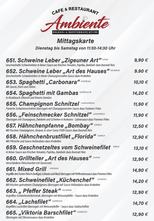 Welcome to Cafe & Restaurant Ambiente, a culinary gem nestled in Niederkruchten, Germany. This charming eatery is celebrated for its delightful mid-day menu, offering a generous selection that caters to all tastes. Guests rave about the affordable four-course lunch at just 17€, ensuring great value without compromising quality.